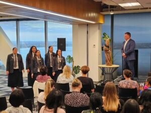 With supporting waiata tautoko from Auckland Girls Grammar’s Kahurangi group, we were able to express our gratitude to Mark through mihi and the gift of a tāonga, representative of his humility, generosity, and power as a leader.